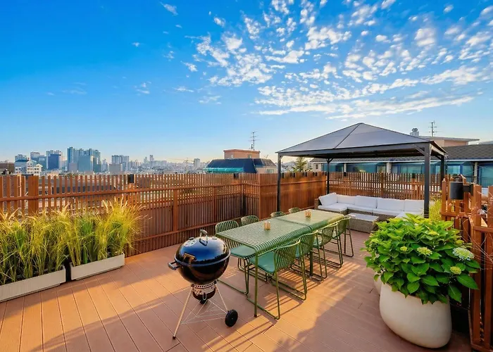Htb Tailored Service Home & Garden Near Seoul Stnは龍山区(ヨンサング)地区に位置し,南山図書館から徒歩ですぐです. 1のベッドル-ムのHtb Tailored Service Home & Garden Near Seoul Stnは庭園の眺めに面しています.